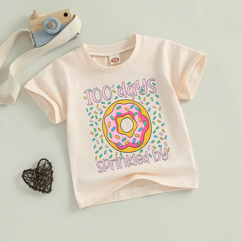 Children’s Girls Short Sleeve Crew Neck Ice Cream Print Summer Tops Clothing for Everyday Casual Wear